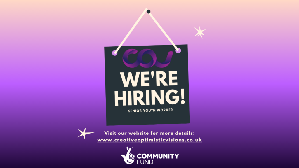 Thanks to support from The National Lottery Reaching Communities Fund, we have the opportunity to welcome a Senior Youth Worker into the Creative Optimistic Visions family.